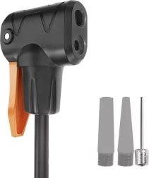Universali dviejų prievadų galvutė su svirtimi greitam fiksavimui tinka automobilio ir dviračio vožtuvams. Rinkinyje – adata kamuoliams ir 2 kūginiai antgaliai čiužiniams bei kitiems pripučiamiems gaminiams.