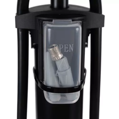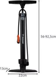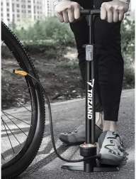 Patikimas grindinis TRIZAND siurblys sujungia tvirtą metalinę konstrukciją ir tikslų slėgio matavimą naudojant analoginį manometrą. Dėl ilgos žarnos su greito fiksavimo užraktu patogiai pasieksite vožtuvus ir sandariai juos užfiksuosite be oro nuotėkio. Maksimalus 16 bar / 230 PSI slėgis tinka tiek plentiniams padangoms, tiek kitai sporto ir laisvalaikio įrangai.