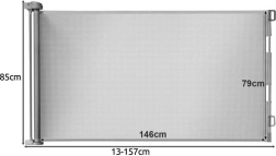 Praktiška ištraukiama saugos užuolaida saugo vaikus ir augintinius nuo pavojingų zonų namuose. Dėka suvyniojimo mechanizmo ji taupo vietą, lengvai valdoma viena ranka ir siūlo universalią montavimo galimybę durims, laiptams ar terasai. Patvari PVC tinklinė medžiaga ir aliuminio elementai užtikrina ilgaamžiškumą, o greitas montavimas su rinkinyje esančiais priedais sutaupo laiko.