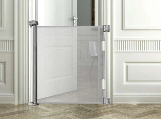 Šie ištraukiami varteliai/užuolaida yra idealus sprendimas praėjimams, laiptams ir kitoms pavojingoms vietoms namuose apsaugoti. Suvyniojus užima itin mažai vietos, o dėl švaraus, modernaus dizaino puikiai dera bet kuriame interjere.