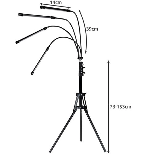 Dėka integruoto 4/8/12 val. laikmačio, atminties funkcijos ir 10 žingsnių ryškumo reguliavimo lengvai nustatysite idealias sąlygas įvairiems augimo etapams – nuo daigų ir ūglių iki žydinčių ir derančių augalų. Stabilus teleskopinis trikojis su plačiu aukščio reguliavimo diapazonu užtikrina patogų išdėstymą patalpose ar šiltnamyje.