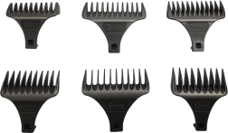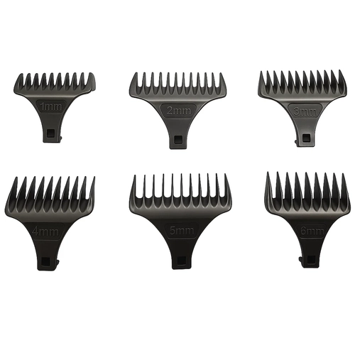 Šeši kreipiamieji šukų antgaliai tiksliam ilgio valdymui. Tinka įvairiems plaukų kirpimams ir barzdos formavimui.