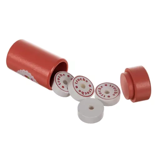 Taip pat yra dantų modelis su išimamais dantimis taisyklingai burnos higienai treniruoti, stetoskopas, termometras, injekcinis švirkštas, „vaistai“ ir kiti priedai. Medinė konstrukcija yra ilgaamžė, patvari ir maloni – ideali kasdieniam žaidimui.