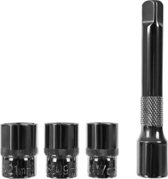 Rinkinyje rasite viską, ko reikia: 3 antgalius 17/19/21 mm ir prailginimą geresniam priėjimui. Aukštos kokybės plieninė konstrukcija atspari deformacijoms ir įtrūkimams, silikoniniai elementai didina darbo komfortą. Taip pat pridedamas patvarus dėklas, kuris saugo įrankį laikymo ir transportavimo metu.