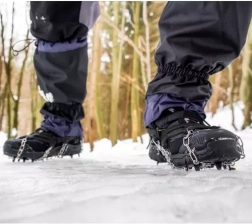 Šie universalūs neslystantys batų antbačiai yra patikimi pagalbininkai žiemos žygiams, pasivaikščiojimams miške ir miesto šaligatviams. Kiekvienas antbačis turi 12 nerūdijančio plieno dyglių, sujungtų patvariomis grandinėlėmis, kurios užtikrina stabilų sukibimą tiek ant apledėjusio, tiek ant pažliugusio paviršiaus. Elastinga TPE medžiaga palengvina uždėjimą ir patikimai apgaubia įvairių tipų avalynę.