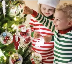 Šiuos permatomus burbulus lengva atidaryti į dvi puses, tad galite juos pripildyti savo dekoracijomis – nuo plunksnelių ir kaspinų iki saldainių. Dėl skaidraus paviršiaus juos galima dažyti iš vidaus ir išorės bei derinti su tokiomis technikomis kaip dekoravimas servetėlėmis (decoupage) ar namų dekoras. Taip sukursite unikalius papuošimus, kurie pabrėš Kalėdų atmosferą.