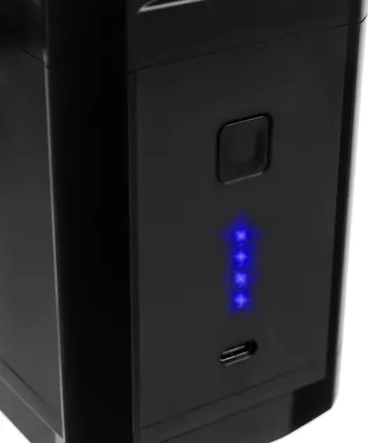 Didžiausias privalumas – belaidis veikimas. Ją galima naudoti ir vietose be elektros tinklo. Akumuliatoriaus talpa – 5200 mAh, o įkrovos lygį rodo keturios LED lemputės.