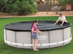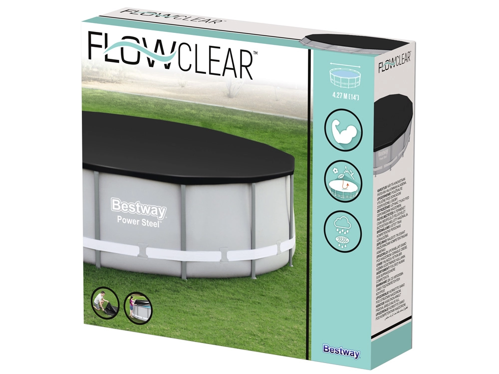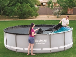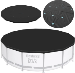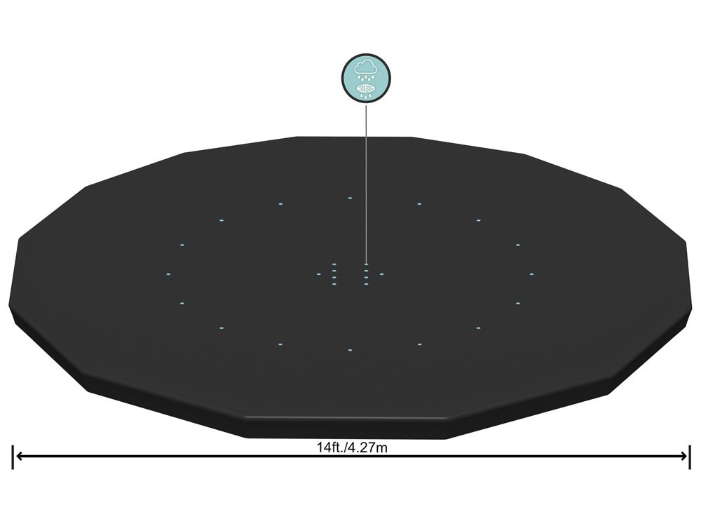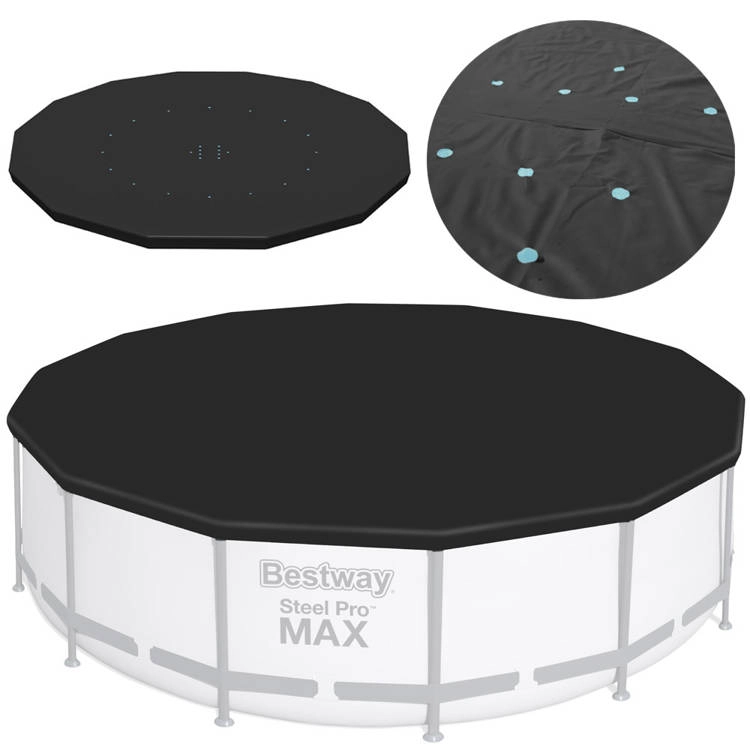 Praktiška ir patvari danga apvaliems rėminiams baseinams, kurių skersmuo 427 cm, padės ilgiau išlaikyti vandenį švaresnį ir paruoštą maudynėms. Juodos spalvos plėvelė gerina šilumos izoliaciją, mažina užteršimą nešvarumais, o dėl virvelių ją lengvai ir tvirtai pritvirtinsite, kad jos nenupūstų vėjas.