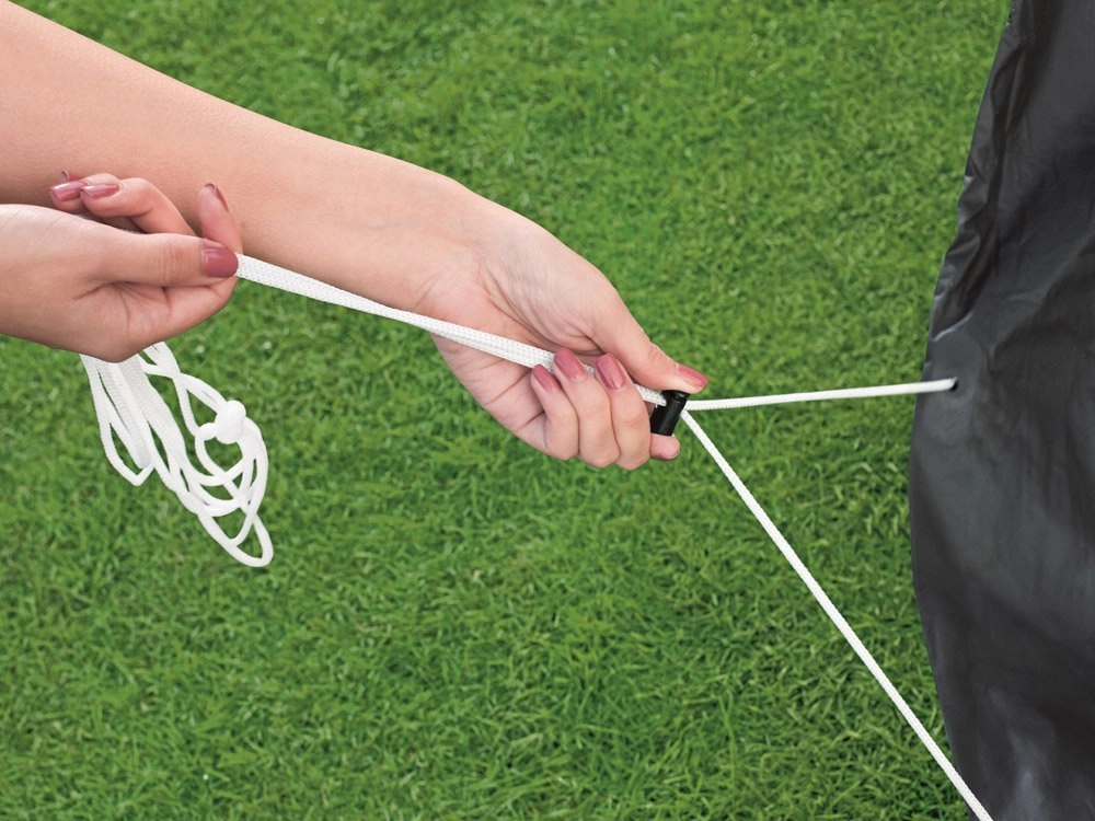 Tvirtinimo virvelės su paprastu priveržimu patikimai laiko dangą vietoje, kad jos nenuneštų vėjas. Greitas montavimas ir nuėmimas be įrankių.