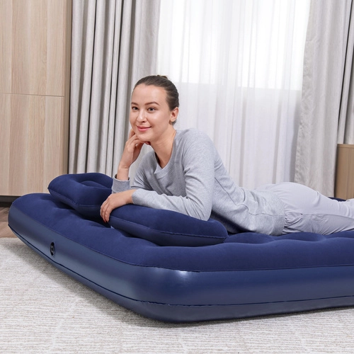 Mėgaukitės patogumu bet kur – dvivietis čiužinys BESTWAY Queen, kurio matmenys 203 × 152 × 22 cm, puikiai tinka tiek vidaus patalpoms, tiek palapinei. Minkštas velūrinis paviršius malonus liesti, o vidinė Coil‑Beam konstrukcija imituoja įprasto čiužinio spyruokles ir suteikia stabilumą bei tolygų svorio paskirstymą.