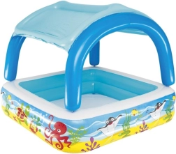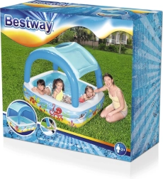 Šis vaikiškas pripučiamas baseinas iš Bestway pagamintas iš patvarios vinilinės medžiagos, kuri užtikrina ilgalaikį smagumą ir saugumą žaidžiant. Baseinas turi du atskirus pripučiamus žiedus, kurie suteikia stabilumo ir saugumo, o pripučiama pastogė saugo vaikus nuo kenksmingų saulės spindulių. Rinkinyje taip pat yra vandeniui atspari taisomoji lopinė, leidžianti pataisyti baseiną net vandenyje.