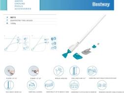 Bestway AquaCrawl baseinų valymo rinkinys sukurtas lengvam ir efektyviam baseinų valymui. Jis leidžia pašalinti iš vandens nešvarumus, įskaitant vabzdžius, lapus ir kitus teršalus, užtikrinant švarų ir skaidrų vandenį.