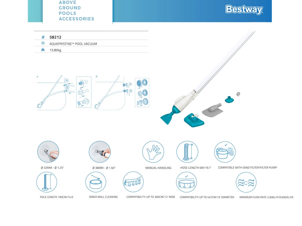 - 1,9 m ilgio kotas – puikus sprendimas baseino dugnui ir sienelėms valyti.