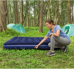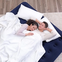 Patvari vinilo (PVC) medžiaga atlaiko dažną naudojimą, o praktiški greito pripūtimo ir išleidimo vožtuvai su blokavimu taupo laiką statant ir pakuojant. 203 × 183 × 22 cm išmatavimai patogiai talpina dviem asmenims, todėl tinka tiek svetainei, tiek palapinei.