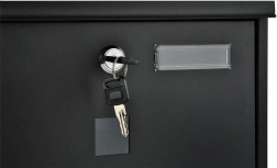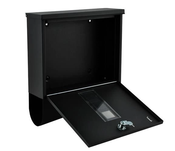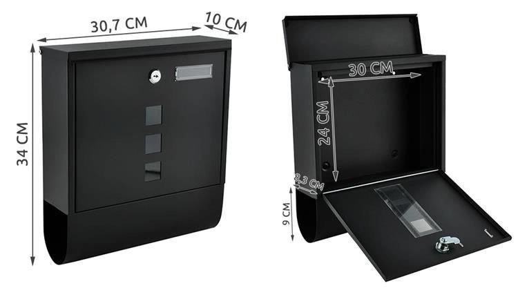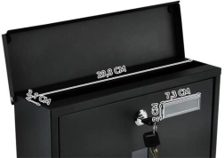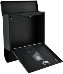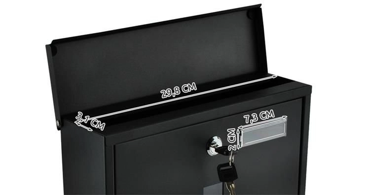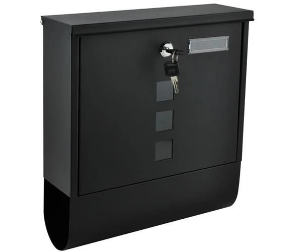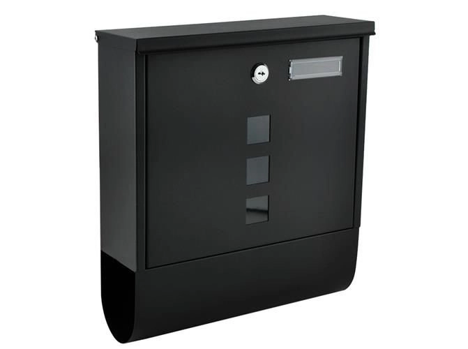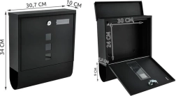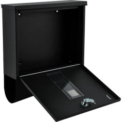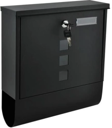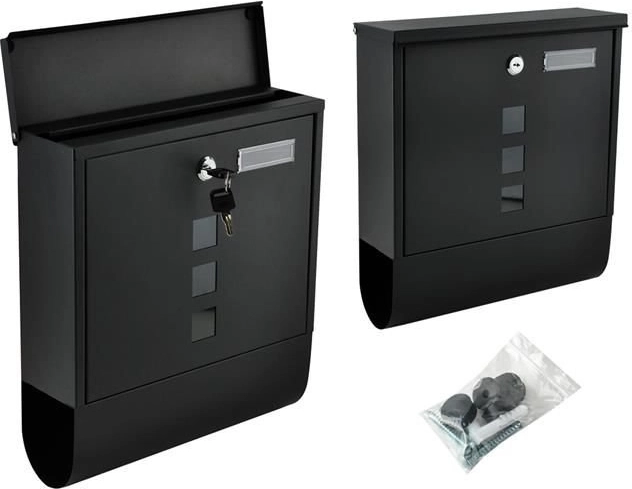 Elegantiška juoda pašto dėžutė iš patvaraus galvanizuoto cinkuoto metalo užtikrina saugų jūsų korespondencijos pristatymą. Ji turi uždengtą įmetimą A4 formatui, užrakinamas dureles su 2 raktais ir praktišką laikraščių bei skrajučių laikiklį. Tvirta konstrukcija su apsauga nuo oro sąlygų ir vėdinimo angomis saugo siuntas sausas, o montavimas paprastas dėl pridedamos komplektacijos.