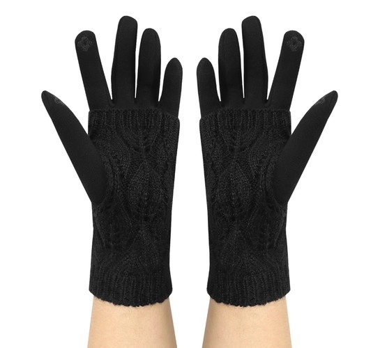 Praktiškos jutiklinės pirštinės elegantiškos juodos spalvos leidžia valdyti išmanųjį telefoną nenusiimant dėl specialaus paviršiaus ant nykščio ir smiliaus. Komplekte yra šilti, nuimami rankogaliai su megztu raštu, suteikiantys papildomą apsaugą nuo šalčio ir vėjo. Unisex kirpimas, minkšta medžiaga ir universalaus dydžio pasiūla užtikrina patogumą keliaujant, vairuojant ir kasdien dėvint.