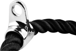 Virvė turi guminius, neslystančius galus, kurie suteikia tvirtą ir saugų suėmimą treniruočių metu. Metalinė jungtis leidžia lengvai prijungti prie bet kurio treniruoklio – tiek viršutinio, tiek apatinio skriemulio.