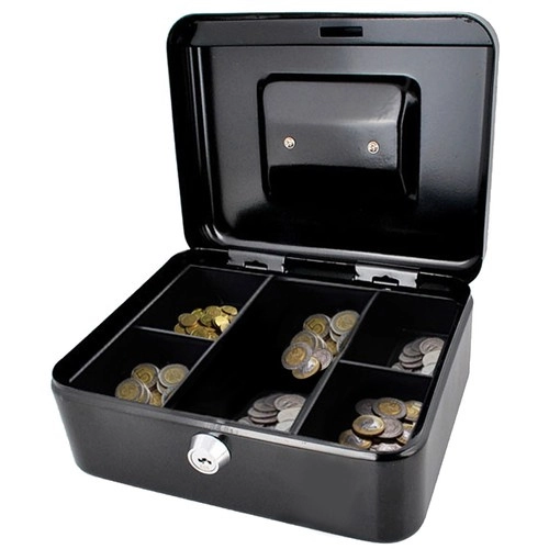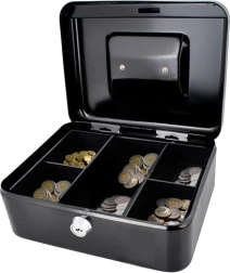 Po išimamu monetų dėklu yra praktiška paslėpta vieta banknotams, dokumentams ar kitoms vertybėms. Aiškus skyrių išdėstymas padeda smulkius pinigus ir banknotus turėti po ranka ir greitai suskaičiuoti – idealu namams, biurui ir registratūrai.