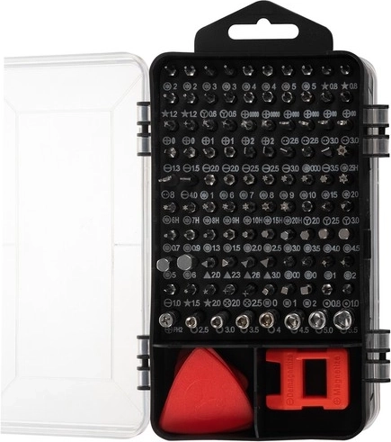 Rinkinyje yra Torx/Torx su anga, Phillips, tiesūs, trikampiai, Pentalobe, Y ir kiti antgaliai – idealiai tinka telefonams, nešiojamiesiems kompiuteriams, laikrodžiams ir akiniams.