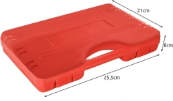 Tvirtas plastikinis lagaminas laiko visą rinkinį vienoje vietoje, apsaugo jį transportuojant ir palengvina greitą naudojimą dirbtuvėse ar lauke.