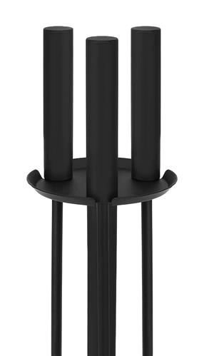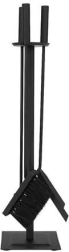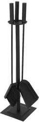 Elegantiškas 4 viename židinio įrankių rinkinys patogiam židinių, krosnelių, grilių ir laužaviečių aptarnavimui. Komplekte yra žarsteklis, semtynė, šepetys ir stabilus stovas su neslystančiomis kojelėmis. Patvari konstrukcija iš nerūdijančio plieno su matiniu juodu paviršiumi maskuoja smulkius įbrėžimus ir nešvarumus bei suteikia interjerui švarų, modernų įvaizdį.