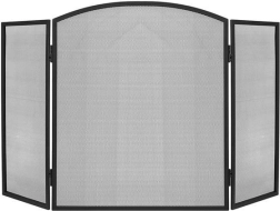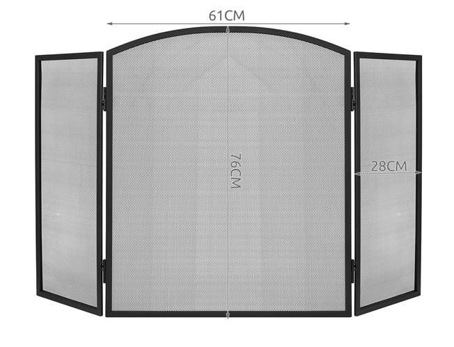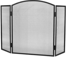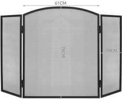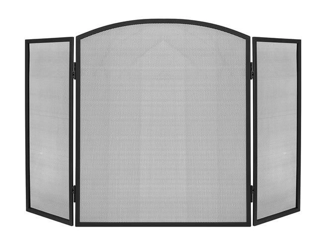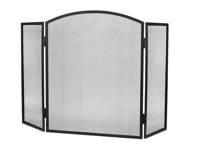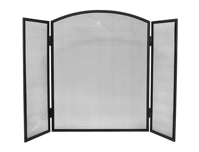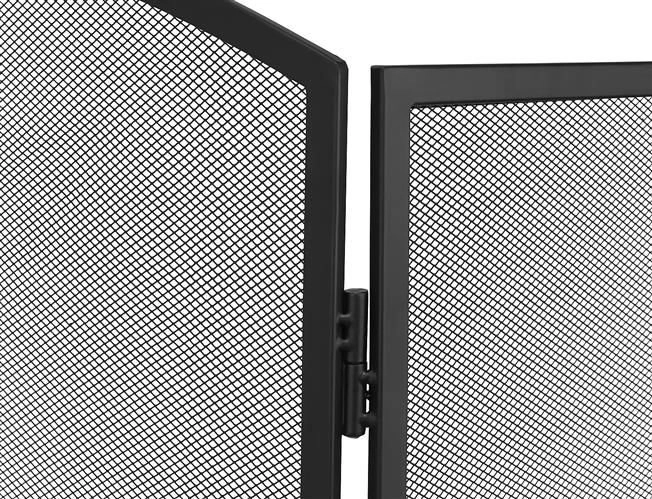 Elegantiška trijų dalių židinio uždanga su smulkiu plieniniu tinkleliu patikimai apsaugo grindis ir aplinką nuo įkaitusių kibirkščių ir žarijų. Dėl 118 × 76 cm matmenų ji užtikrina didelį saugumo lygį, matinė juoda apdaila puikiai dera interjere, o sulankstoma konstrukcija leidžia laisvai reguliuoti pagal židinio plotį ir formą. Patvarus plieninis tinklas praleidžia šilumą ir leidžia grožėtis liepsnomis, tačiau sulaiko nešvarumus ir žarijas.