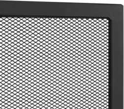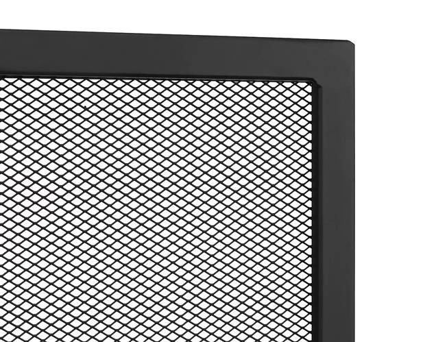 Saugumas ir stilius prie atviros židinio ugnies dera kartu. Ši tvirta židinio uždanga iš plieno ir geležies su smulkiu tinkleliu saugo nuo lekiančių kibirkščių ir įkaitusių dalelių, tuo pačiu išlaikydama vaizdą į liepsnas ir šilumos sklaidą į patalpą. Matinė juoda apdaila yra atsparesnė smulkiems įbrėžimams ir nešvarumams ir tinka tiek moderniems, tiek klasikiniams interjerams.