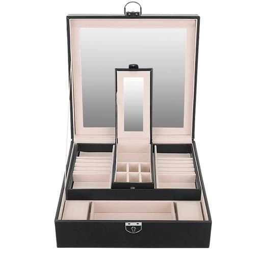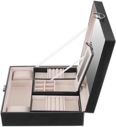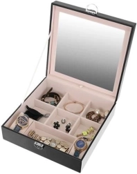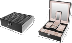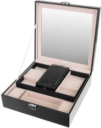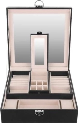 Ši papuošalų dėžutė puikiai tiks kiekvienai papuošalų ir mados aksesuarų mylėtojai. Siūlo kelis laikymo lygius, įskaitant išimamą kelioninę dėžutę, todėl yra universali ir praktiška, tai ypač įvertinsite keliaudami. Į dangtelį integruotas veidrodis palengvina papuošalų užsidėjimą ir korekcijas.