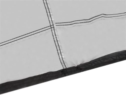 Užvalkalas pilnai dengia dvivietę kėdę, įskaitant pagalvėlę ir konstrukciją, todėl užtikrina maksimalią apsaugą ir neleidžia skverbtis drėgmei. Dėl integruotos sutraukimo virvelės su fiksatoriumi užvalkalas tvirtai laikosi ir atlaiko stiprius vėjus.