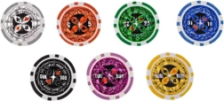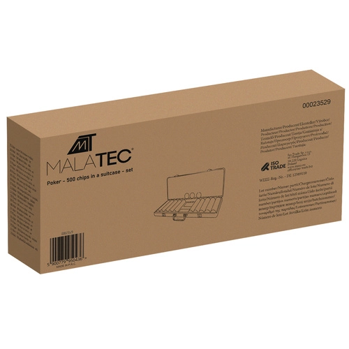 • 500 žetonų su metaliniu branduoliu – realistiškas svoris, puikus pojūtis.
