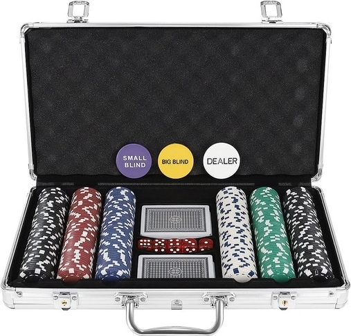 Surengkite savo pokerio vakarą su pilnu rinkiniu, kuriame yra viskas, ko reikia Texas Hold'em ir kitiems kortų žaidimams. Žetonai su metaliniu branduoliu (10 g) suteikia autentišką kazino pojūtį – maloniai sveria, puikiai stirtuojasi ir yra labai patvarūs. Viskas sudėta į tvirtą aliuminio lagaminą su porolono įdėklu ir tiksliai suformuotomis pertvaromis, todėl turinys liks savo vietose net keliaujant.
