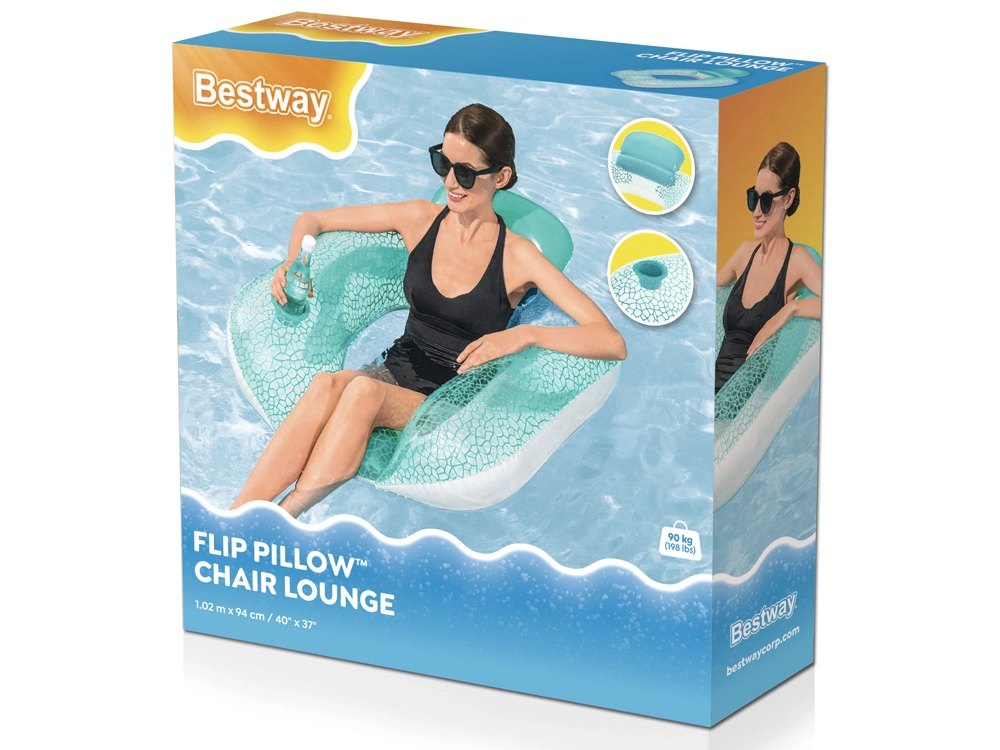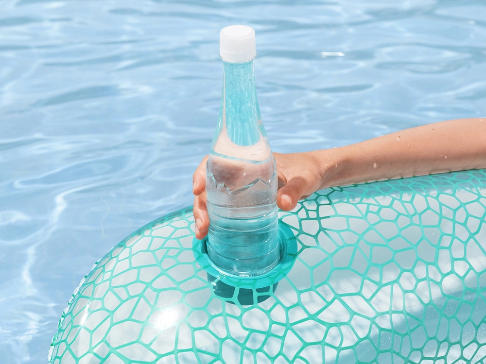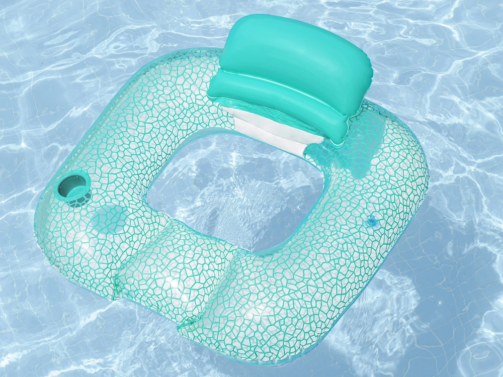 Pripučiama gultą primenanti kėdė sujungia patogumą ir praktiškumą poilsiui prie vandens. Ergonominis atlošas prilaiko nugarą, o laikiklis puodeliui ar buteliui užtikrina, kad mėgstamas gėrimas visada būtų po ranka. Stilingas turkio ir baltos mozaikos dizainas puikiai išsiskiria ant bet kokio vandens paviršiaus.