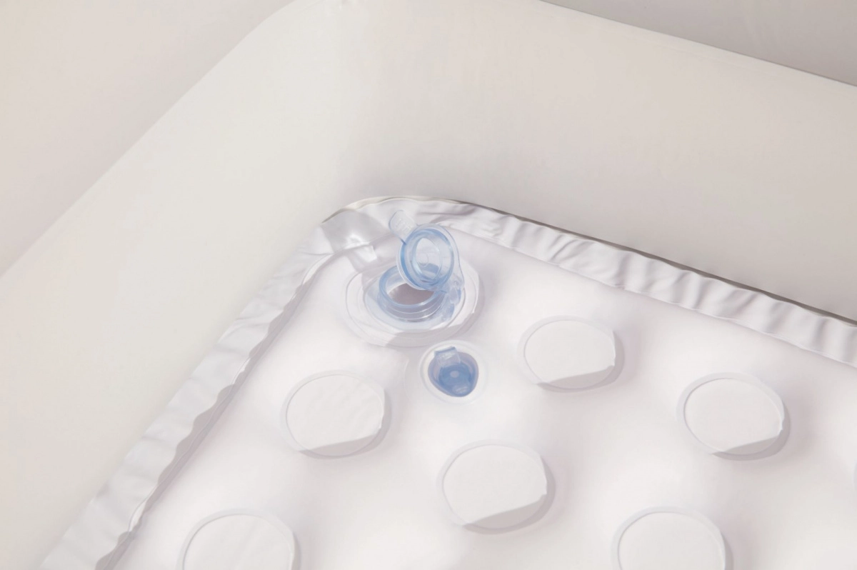 Konstrukcija iš patvaraus PVC (sienelių storis 0,24 mm) ir dvi atskiros kameros su saugos vožtuvais užtikrina stabilumą ir ilgą tarnavimo laiką. Išleidus orą užima labai mažai vietos, todėl puikiai tinka vonios kambariui, sodui ir kelionėms.
