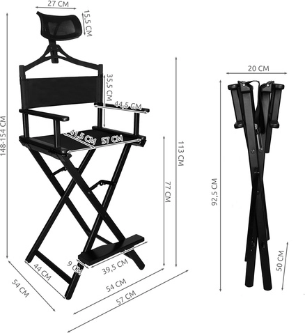 Ieškote patikimo, lengvo ir stabilaus kėdės vizažui ir makiažui? Ši aukšta režisieriaus aliuminio kėdė siūlo profesionalią ergonomiką, lengvą sulankstymą ir patvarias medžiagas. Sėdynė ir atlošas iš Oxford 600D audinio yra atsparūs vandeniui ir lengvai prižiūrimi, o nuimamas galvos atlošas didina komfortą per ilgesnes sesijas.