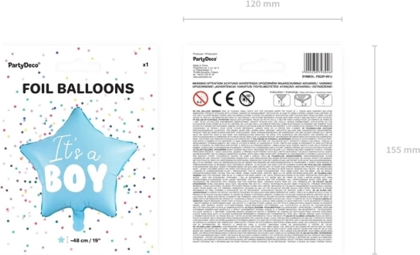 Sutikite savo mažąjį princą su stilingu ir elegantišku foliniu balionu žvaigždės formos. Šis balionas idealiai tinka kūdikio sutikimo vakarėliui (baby shower) ir kitoms ypatingoms akimirkoms su šeima bei draugais.