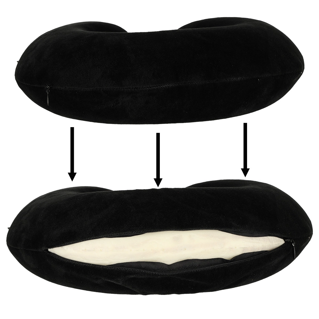 Pagalvės U forma apgaubia sprandą ir palaiko galvą teisingoje padėtyje, taip pagerindama komfortą net ilgo sėdėjimo metu.