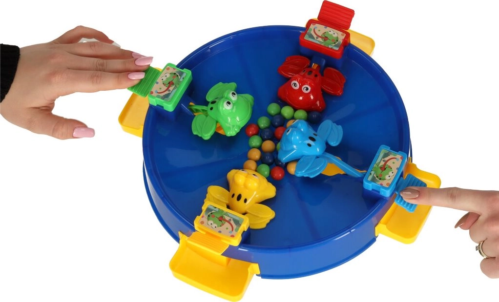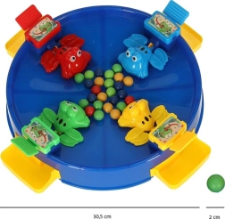 Šokinėjantys varliukai – tai puikus įgūdžių žaidimas vaikams ir suaugusiesiems. Išbėrus kamuoliukus žaidimo lentos centre, svirtelėmis ant varliukų stenkitės sugaudyti kuo daugiau. Pasibaigus žaidimui suskaičiuokite surinktus kamuoliukus – laimi tas, kuris jų turi daugiausia.