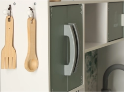 Šios virtuvėlės matmenys yra 62 cm x 26 cm x 85 cm, todėl ji idealiai tinka bet kuriam vaikų kambariui. Dėl santūrių spalvų lengvai derės jūsų interjere.