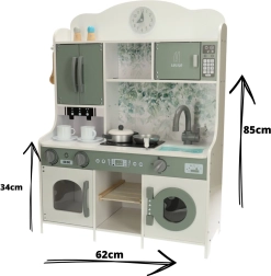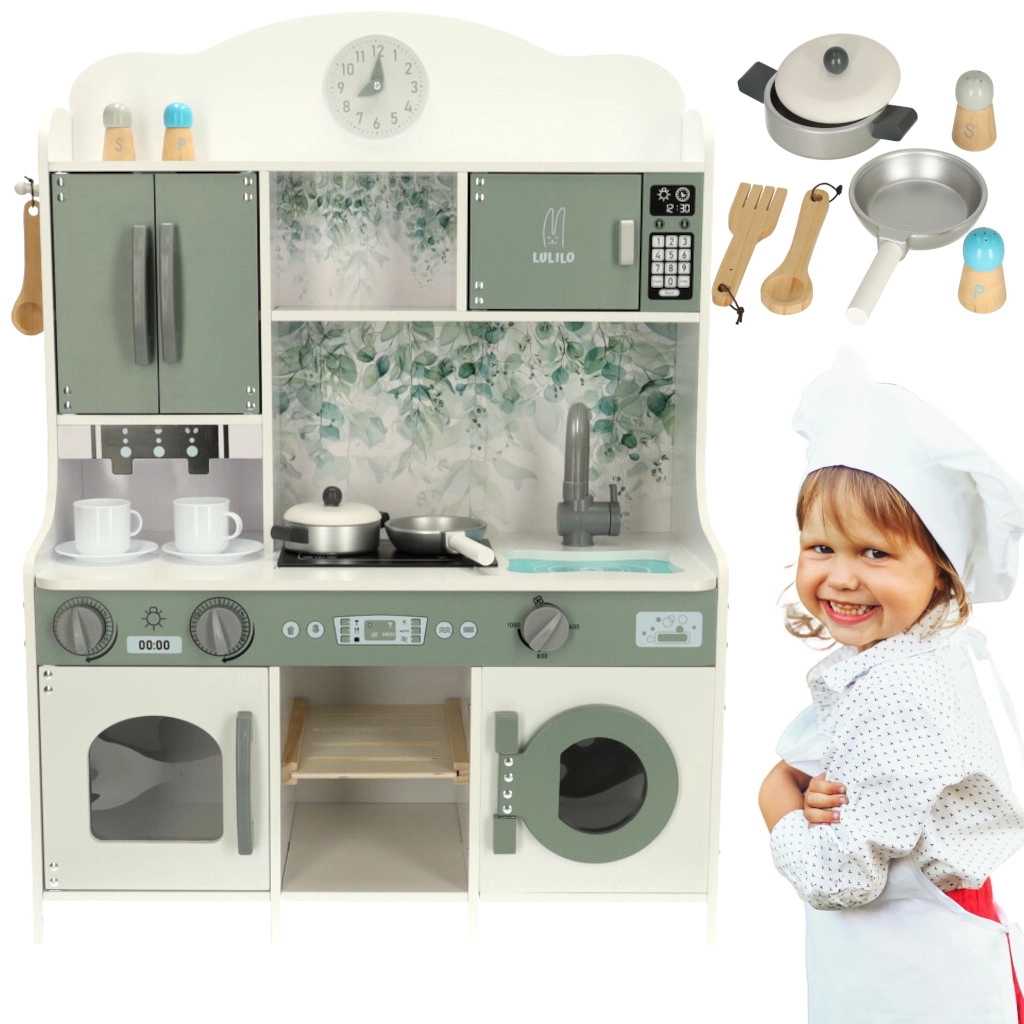 Patirkite virtuvės karalystės žavesį su medine vaikų virtuvėle Lulilo Saliko. Vaikai mėgsta mėgdžioti suaugusiuosius, o ši virtuvėlė suteiks jiems erdvę lavinti kūrybiškus ir praktinius įgūdžius. Su realistiškomis funkcijomis, tokiomis kaip mikrobangų krosnelė ir kavos aparatas, jie taps pagrindiniais šeimos virtuvės šefais.