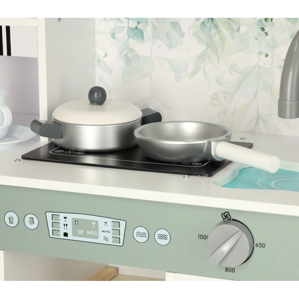 Virtuvėlėje yra mikrobangų krosnelė, skalbyklė, orkaitė ir kavos aparatas, todėl vaikai gali tyrinėti ir mėgdžioti tikrus virtuvės darbus.