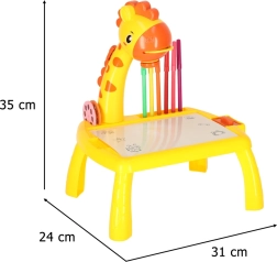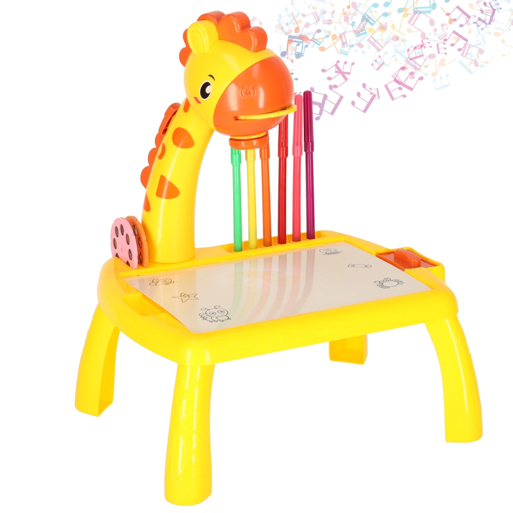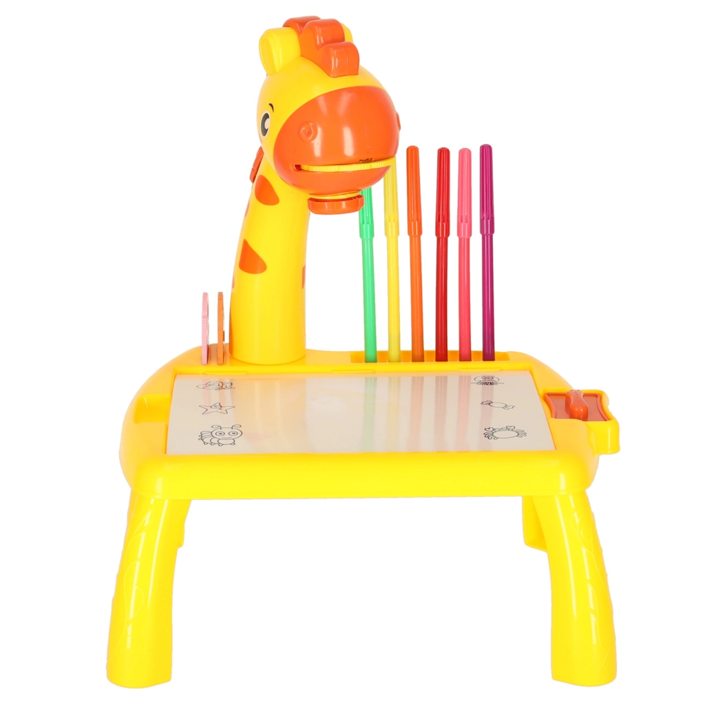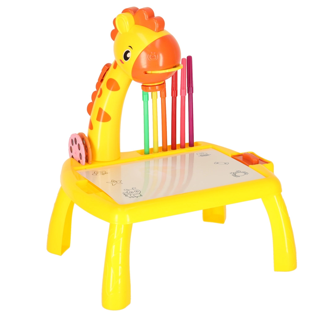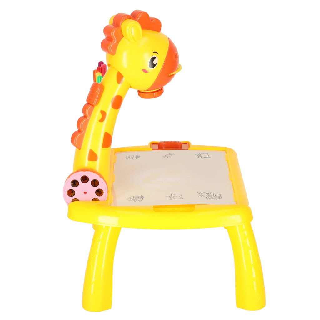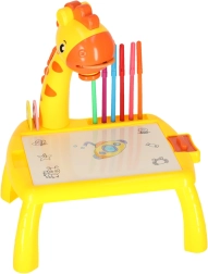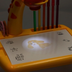 Šis mielas stalinio žirafos formos projektorius pagyvins kiekvieną kūrybinę veiklą. Įdėjus vieną iš trijų diskų su paveikslėliais ir įjungus projekciją, ant paviršiaus pasirodo motyvas, kurį vaikai lengvai apibrėžia. Dėl valomo pagrindo galima bandyti vėl ir vėl – nešvaistant popieriaus.