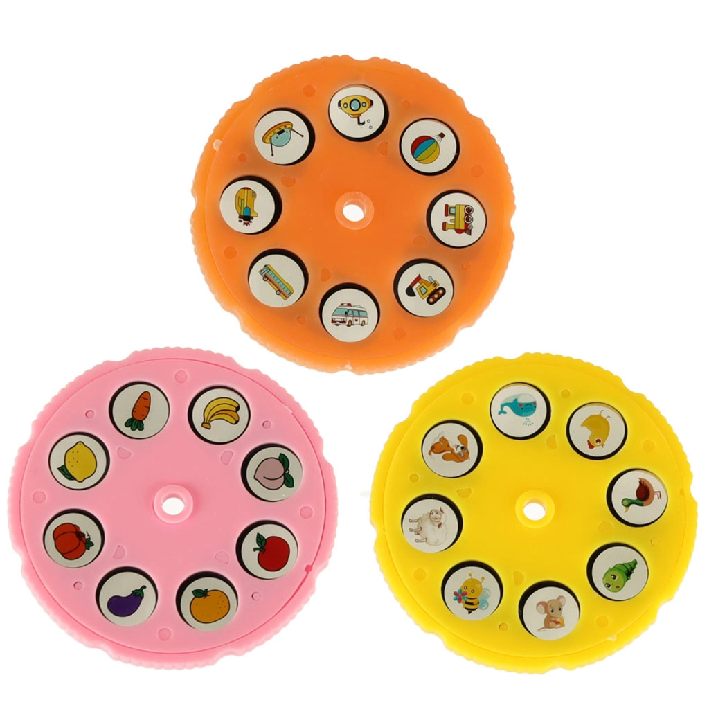 Trys spalvoti diskai siūlo iš viso 24 motyvus (gyvūnai, vaisiai, transporto priemonės ir kt.). Tereikia pasukti ir akimirksniu paruoštas kitas paveikslėlis.