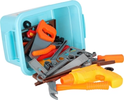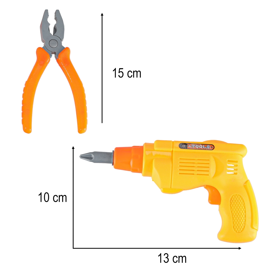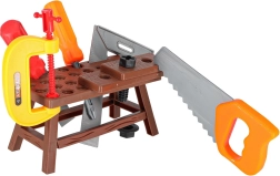 Pilnas vaikiškas darbastalis su įrankiais mažiesiems meistrams – net 48 dalys kūrybingam žaidimui ir mokymuisi. Ryškios spalvos ir saugi plastikinė konstrukcija padeda lavinti smulkiąją motoriką ir koordinaciją. Komplekte yra varžtai ir veržlės, plastikinis grąžtas/atsuktuvas, plaktukas, pjūklelis, replės bei perforuoti statybiniai elementai. Praktiška laikymo dėžė viską laiko tvarkingai ir palengvina nešiojimą.