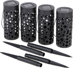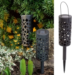Šiuos saulės sodo žibintus tereikia įsmeigti į dirvą arba pakabinti ant šakos ir dieną palikti krautis saulėje. Integruotas akumuliatorius ir sutemų jutiklis užtikrina, kad šviesos įsijungs automatiškai būtent tada, kai jų reikia. Dekoratyvinė perforacija įžiebus sukuria įspūdingus žvaigždžių ir mėnulio raštus.