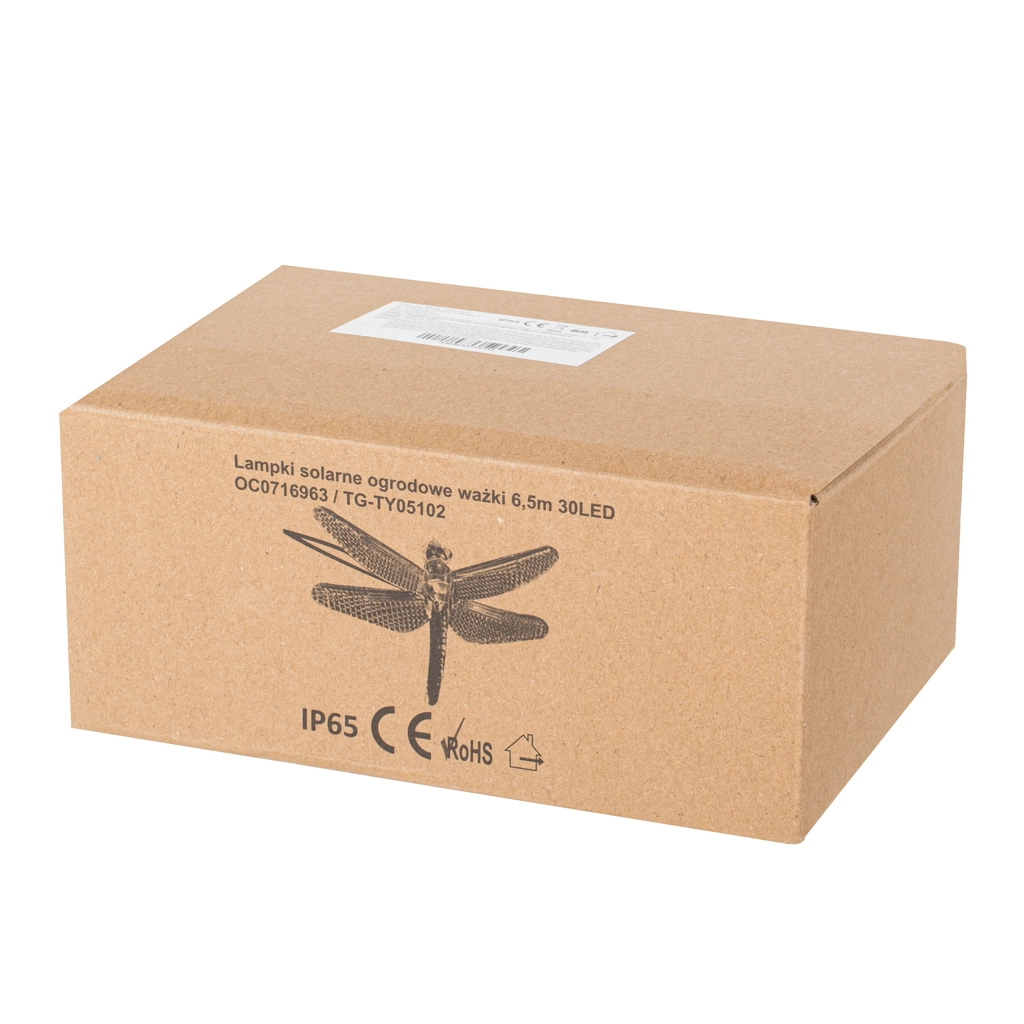 Papuoškite balkoną, terasą ir sodą pasakiška šviesa. Saulės girlianda su laumžirgiais siūlo 30 spalvotų LED, 6,5 m ilgį, 8 apšvietimo režimus ir IP65 atsparumą vandeniui. Be į elektros lizdą jungiamų laidų, taupus saulės energijos veikimas ir iki 7 valandų švietimo sutemus.