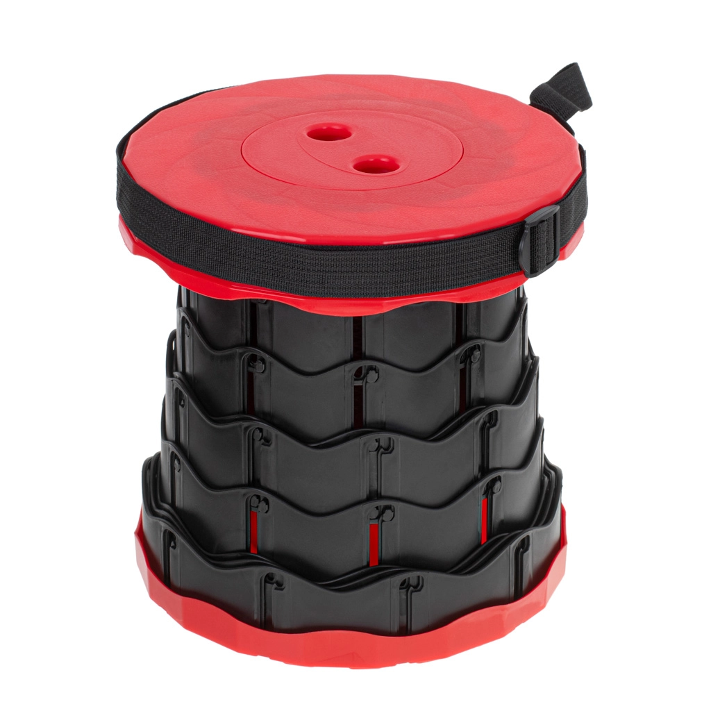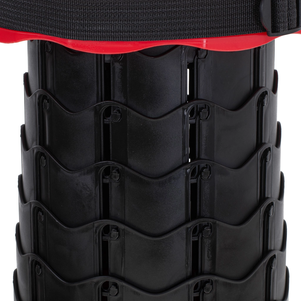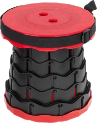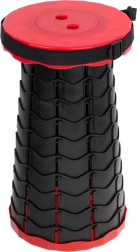 Ši teleskopinė kėdutė išskleidžiama akimirksniu – tiesiog suimkite viršutinę ir apatinę dalį, pasukite, ištraukite iki reikiamo aukščio ir leiskite mechanizmui užsifiksuoti. Tvirta plastikinė konstrukcija suteikia stabilumą ir sėdėjimo komfortą bet kokiomis sąlygomis.