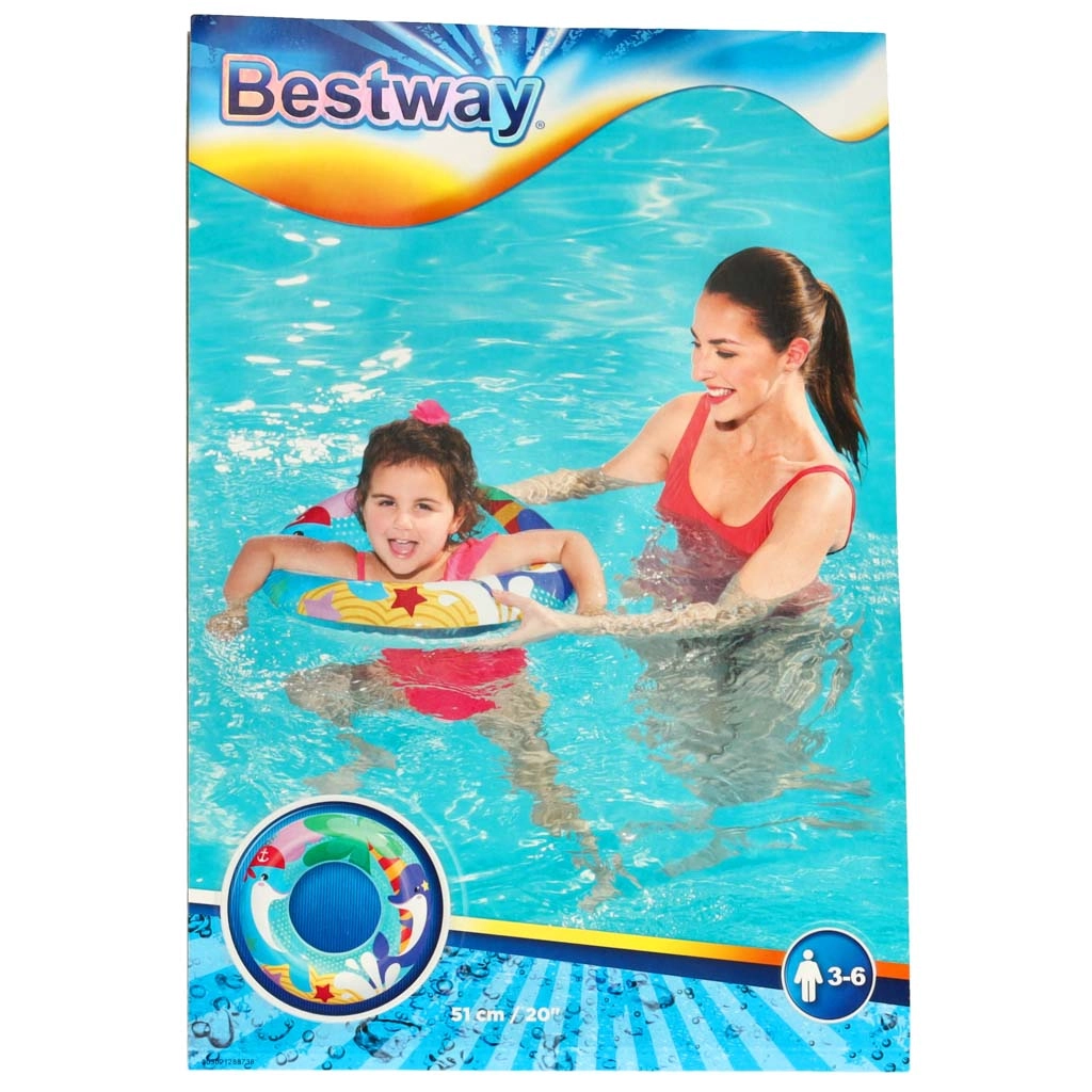 Mėgaukitės vasarišku atokvėpiu su vaikišku plaukimo ratu BESTWAY. Linksmas delfino dizainas iškart patraukia vaikų dėmesį ir skatina vandens žaidimus. 51 cm skersmens ratas – puikus pasirinkimas mažiausiems: jis suteikia stabilų plūdrumą ir nevaržo judesių laisvės.