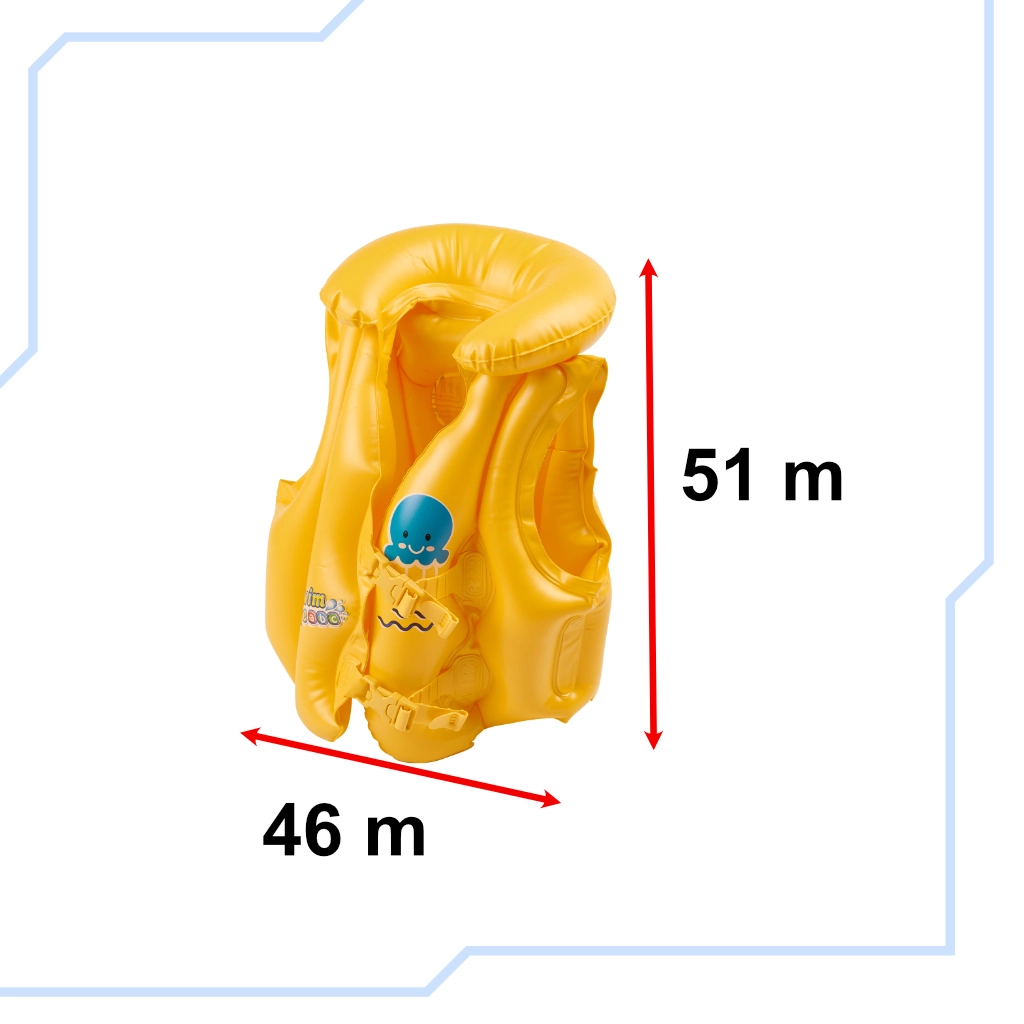Ši pripučiama liemenė yra ideali priemonė 3–6 metų vaikams, kurie mokosi plaukti. Ji siūlo tris kameras pripūtimui, kas padidina saugumą plaukimo metu – net pažeidus vieną kamerą liemenė išlieka plūdri. Ryški geltona spalva vandenyje užtikrina gerą matomumą, o reguliuojamos plastikinės sagtelės leidžia lengvai pritaikyti.