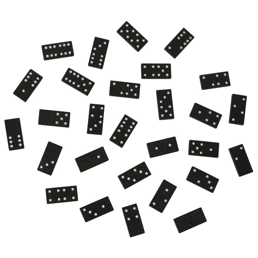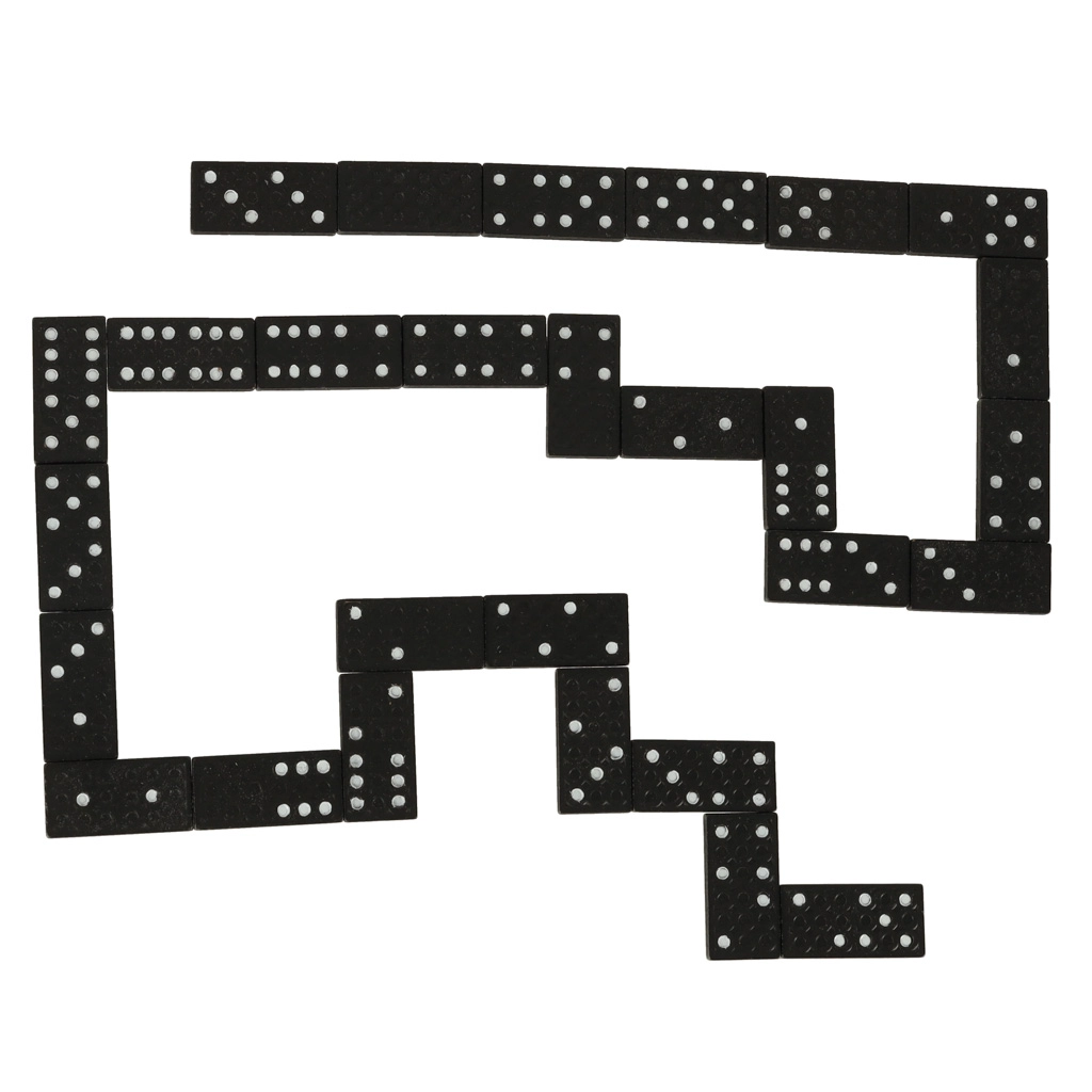 Juodas domino su baltomis taškėmis (0–6) užtikrina puikų skaitomumą ir sklandžią žaidimo eigą tiek vaikams, tiek suaugusiesiems.