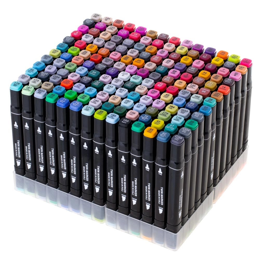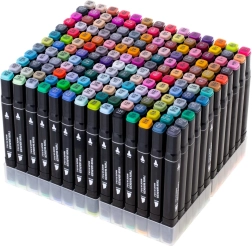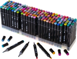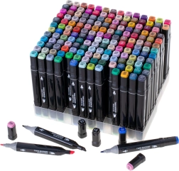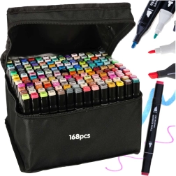 Paleiskite kūrybiškumą su rinkiniu iš 168 dvipusių alkoholinių žymeklių patogiame dėkle ir su plastikiniu stovu. Ryškios, sodrios spalvos lengvai maišosi ir blendinasi, greitai džiūsta ir neteplioja. Platus ir smulkus galiukai užtikrina preciziškas detales ir greitą plotų užpildymą – idealu iliustracijoms, eskizams, dizainui ir spalvinimui.